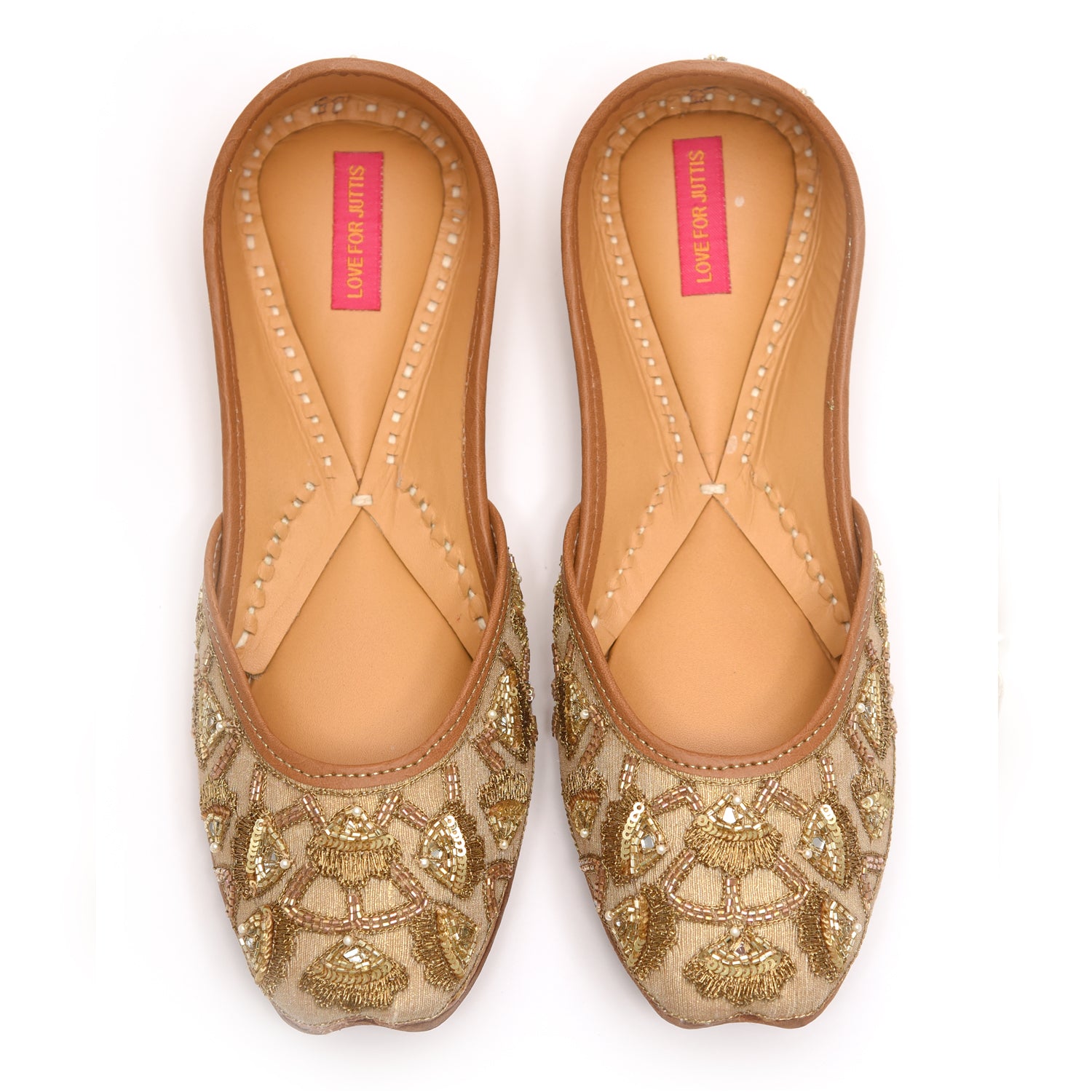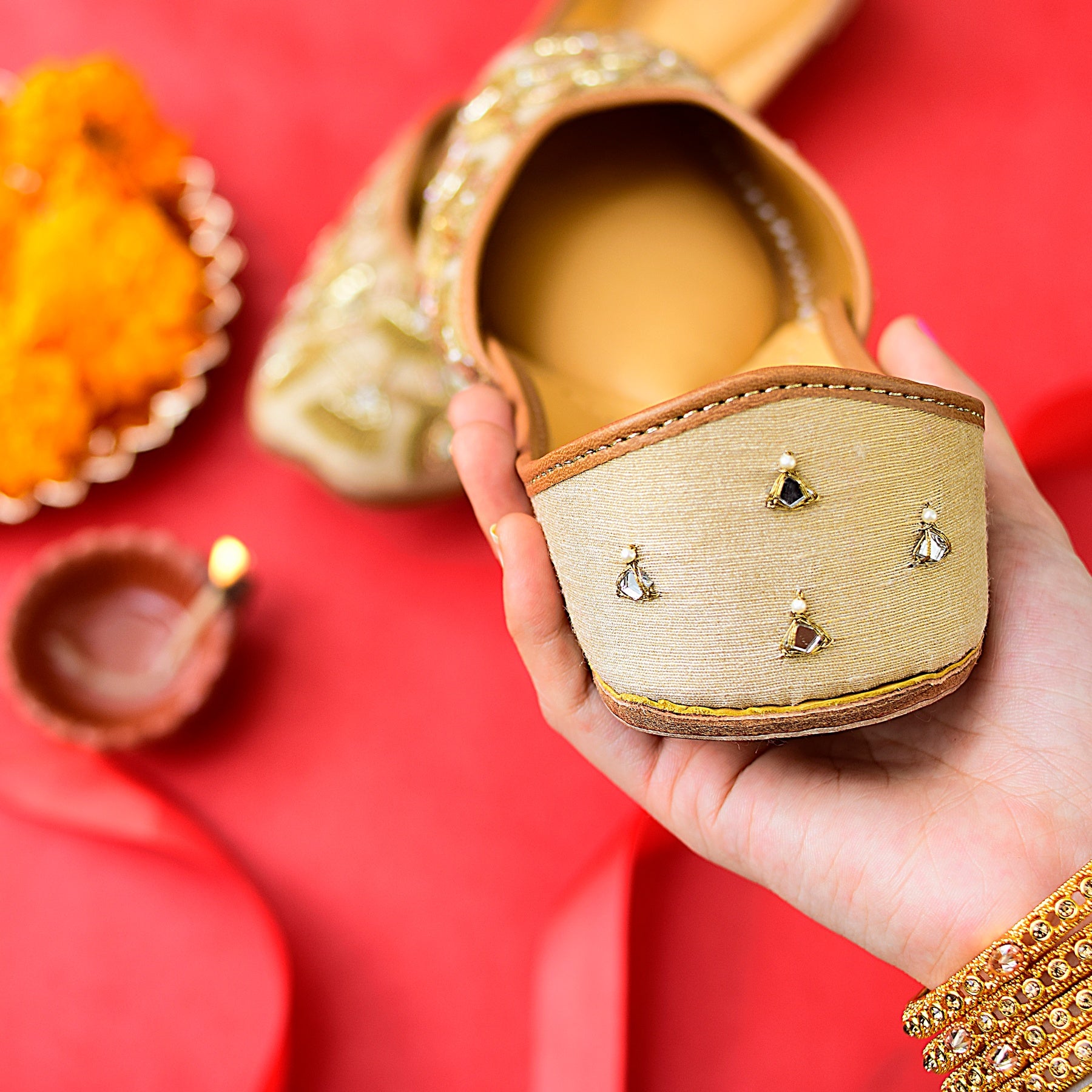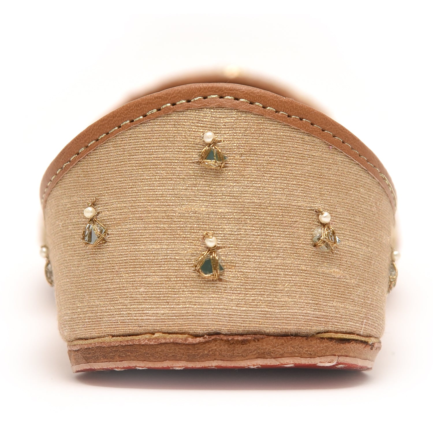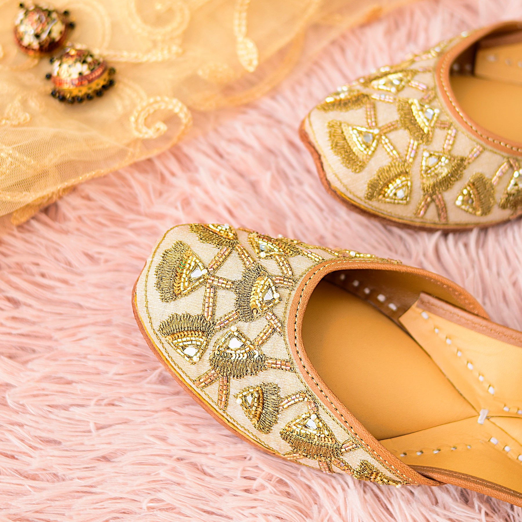 Firdaus is epitome of handcrafted luxury and traditional workmanship. It is extravagantly embellished with with cut glass beads, Zari, mirrors & pearls using traditional Zardozi techniques.